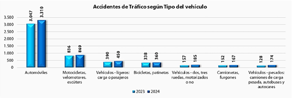 Figura 2. Número de accidentes laborales de tráfico, con baja, según tipo de vehículo. Observatorio Seguridad Vial Laboral 2024. Mutua Universal.
