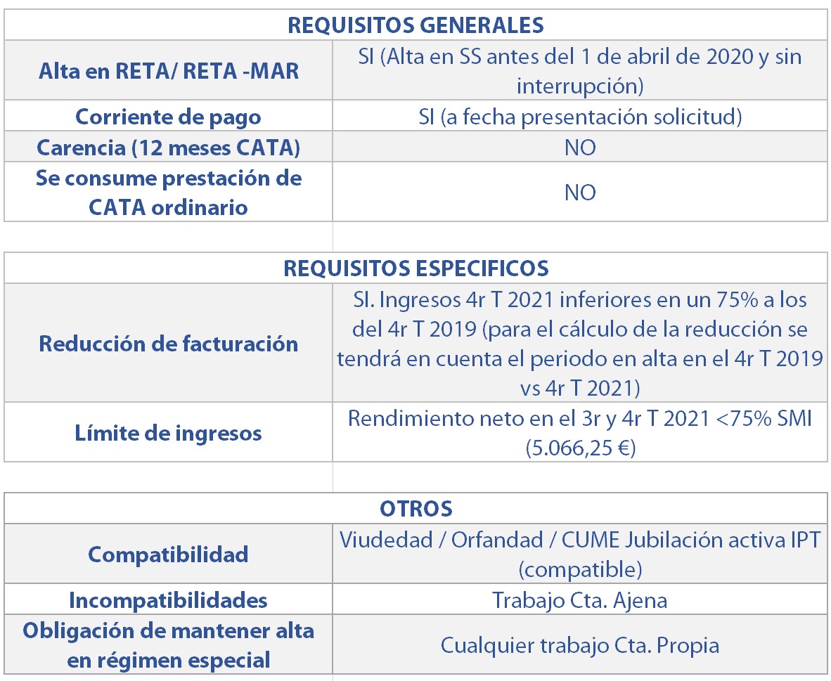 - Estar dado de alta y al corriente en el pago de las cotizaciones en el Régimen Especial de Trabajadores Autónomos o en el Régimen Especial de Trabajadores del Mar como trabajador por cuenta propia desde antes del 1 de abril de 2020. No obstante, si en la fecha de la presentación de la solicitud no se cumpliera el requisito de estar al corriente en el pago, el trabajador autónomo tiene un plazo de treinta días naturales para haber hecho el pago.