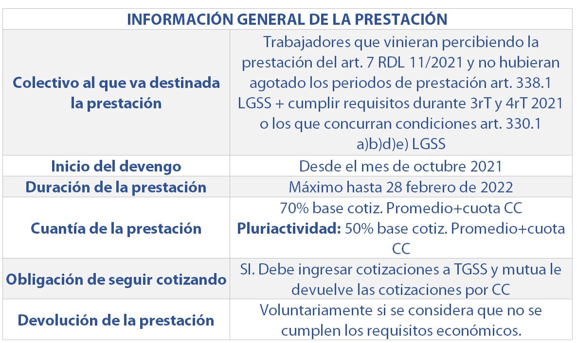 La prestación se reconoció a partir del 1 de octubre de 2021 si se realizó la solicitud antes del 21 de octubre, o con efectos desde el día siguiente a la solicitud si se realizó después de ese día y duró hasta el 28 de febrero de 2022.