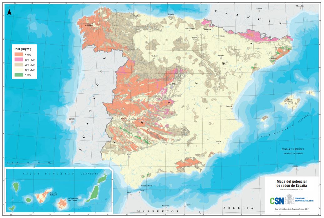Un informe reciente del Ministerio de Sanidad “Mortalidad atribuible a la exposición a radón residencial en España” atribuye al gas radón el 3,8 % de las muertes por cáncer de pulmón en España.