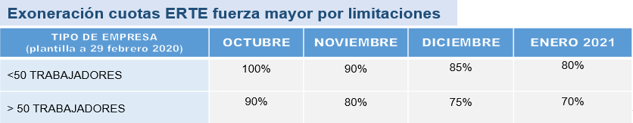 - Salvaguarda del empleo: las empresas que prorroguen los ERTE y se beneficien de la exoneraciones de las cuotas quedarán obligados a mantener el volumen de empleo durante seis meses más.