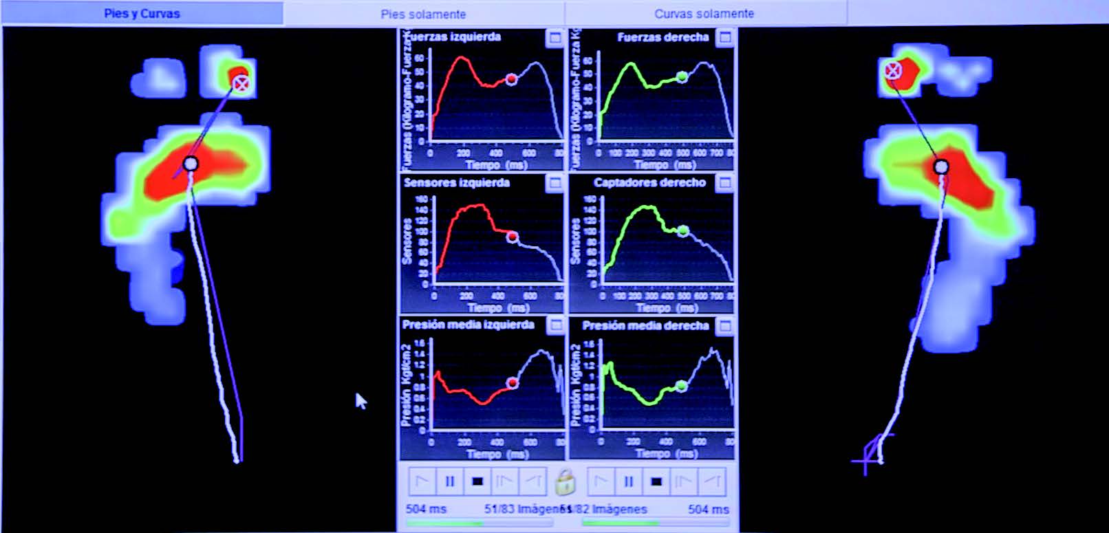 - Plataforma baropodométrica: plataforma ubicada a ras de suelo, describe la calidad de las presiones plantares durante la bipedestación estática y la deambulación. Permite estimar la capacidad de la articulación lesionada para tolerar la marcha.