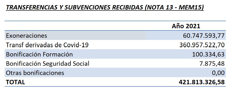 Transferencias y subvenciones recibidas